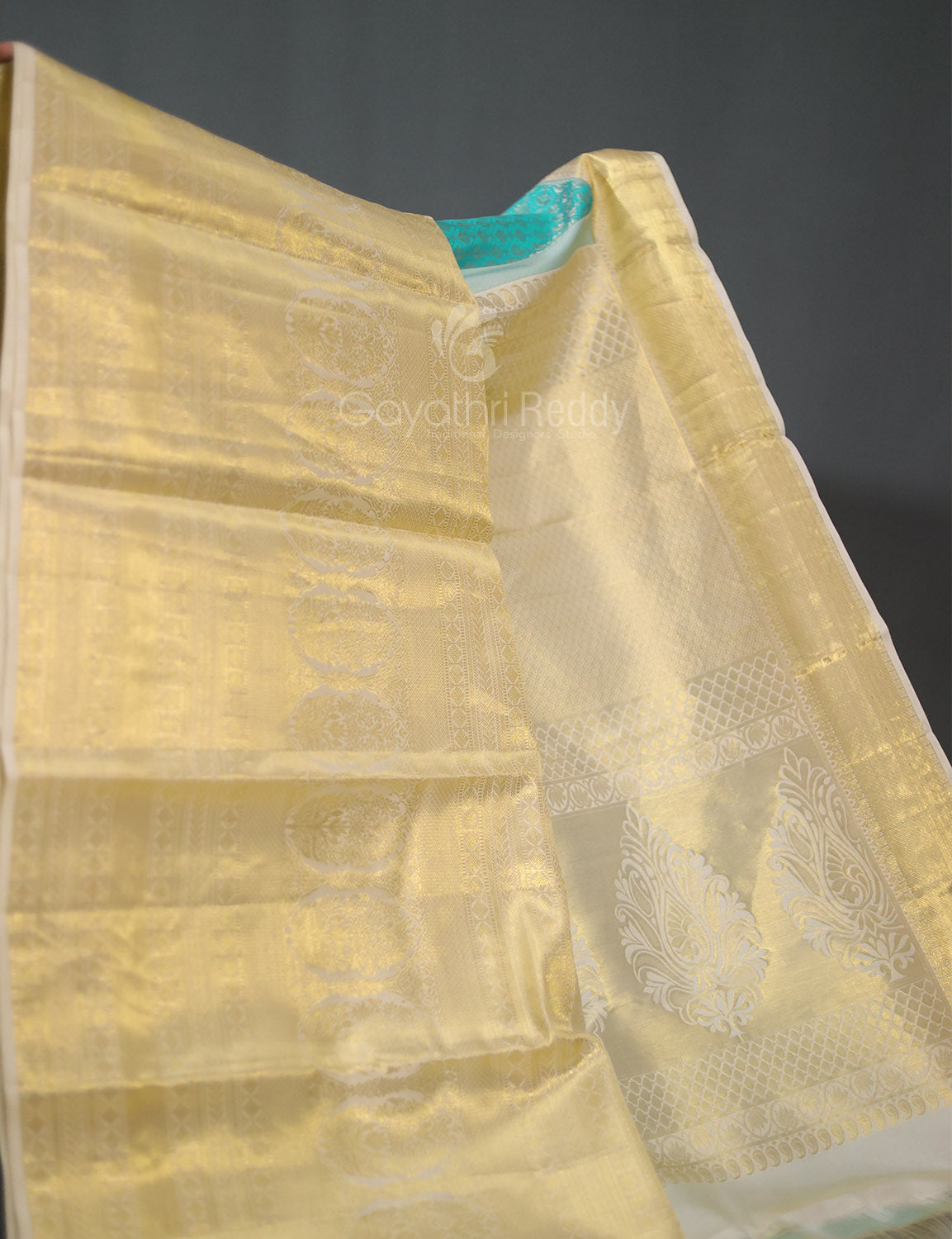 PALLU: Cream colour brocade pallu.